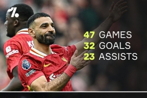 体育资讯4月22日讯 据OneFootball统计,本赛季五大联赛球员中,仅萨拉赫、拉菲尼亚参与进球超过50粒。